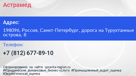 Астрамед по адресу 198096, Россия, Санкт-Петербург, дорога на Турухтанные острова, 8 в дальнейшем Организация, размещена в следующих категориях: