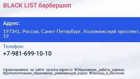 BLACK LIST, барбершоп по адресу 197341, Россия, Санкт-Петербург, Коломяжский проспект, 19 в дальнейшем Организация, размещена в следующих категориях: