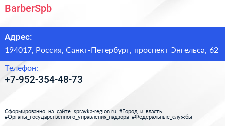 BarberSpb по адресу 194017, Россия, Санкт-Петербург, проспект Энгельса, 62 в дальнейшем Организация, размещена в следующих категориях: