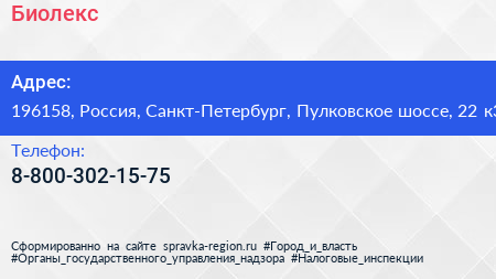 Биолекс по адресу 196158, Россия, Санкт-Петербург, Пулковское шоссе, 22 к3 в дальнейшем Организация, размещена в следующих категориях: