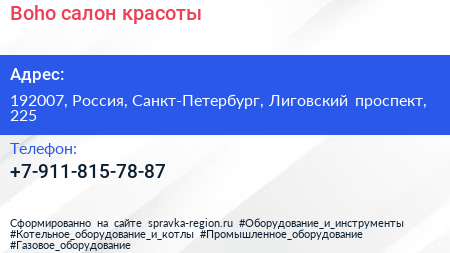 Boho, салон красоты по адресу 192007, Россия, Санкт-Петербург, Лиговский проспект, 225 в дальнейшем Организация, размещена в следующих категориях: