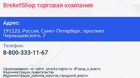 BreketShop, торговая компания по адресу 191123, Россия, Санкт-Петербург, проспект Чернышевского, 7 в дальнейшем Организация, размещена в следующих категориях: