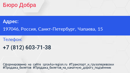 Бюро Добра по адресу 197046, Россия, Санкт-Петербург, Чапаева, 15 в дальнейшем Организация, размещена в следующих категориях: