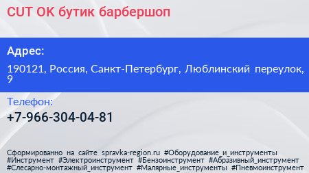 CUT-OK, бутик-барбершоп по адресу 190121, Россия, Санкт-Петербург, Люблинский переулок, 9 в дальнейшем Организация, размещена в следующих категориях: