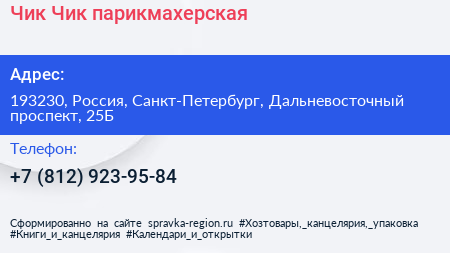 Чик-Чик, парикмахерская по адресу 193230, Россия, Санкт-Петербург, Дальневосточный проспект, 25Б в дальнейшем Организация, размещена в следующих категориях: