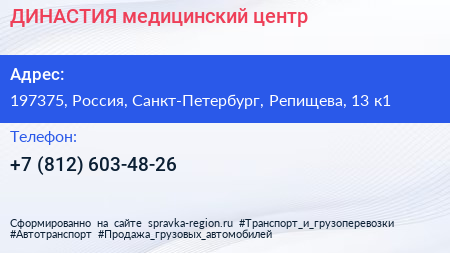 ДИНАСТИЯ, медицинский центр по адресу 197375, Россия, Санкт-Петербург, Репищева, 13 к1 в дальнейшем Организация, размещена в следующих категориях: