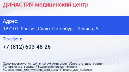 ДИНАСТИЯ, медицинский центр по адресу 197101, Россия, Санкт-Петербург, Ленина, 5 в дальнейшем Организация, размещена в следующих категориях: