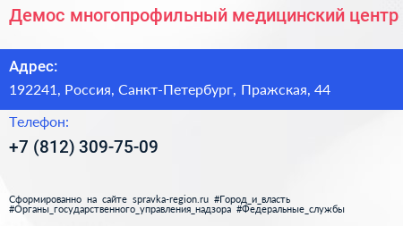 Демос, многопрофильный медицинский центр по адресу 192241, Россия, Санкт-Петербург, Пражская, 44 в дальнейшем Организация, размещена в следующих категориях: