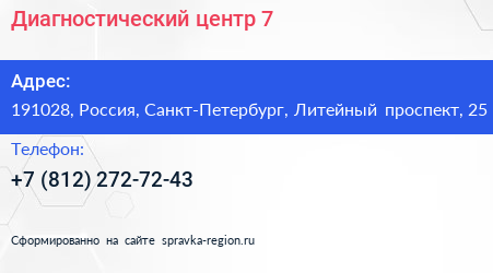 Диагностический центр №7 по адресу 191028, Россия, Санкт-Петербург, Литейный проспект, 25 в дальнейшем Организация, размещена в следующих категориях: