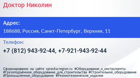 Доктор Николин по адресу 188688, Россия, Санкт-Петербург, Верхняя, 11 в дальнейшем Организация, размещена в следующих категориях: