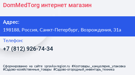 DomMedTorg, интернет-магазин по адресу 198188, Россия, Санкт-Петербург, Возрождения, 31а в дальнейшем Организация, размещена в следующих категориях: