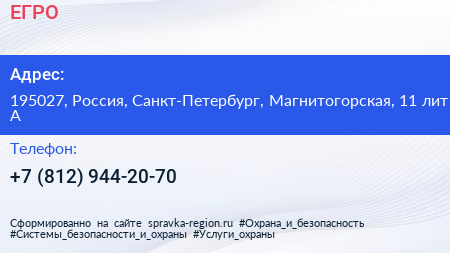 ЕГРО по адресу 195027, Россия, Санкт-Петербург, Магнитогорская, 11 лит А в дальнейшем Организация, размещена в следующих категориях: