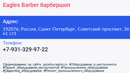 Eagles Barber, барбершоп по адресу 192076, Россия, Санкт-Петербург, Советский проспект, 36 к1 ст1 в дальнейшем Организация, размещена в следующих категориях: