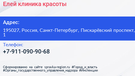 Елей, клиника красоты по адресу 195027, Россия, Санкт-Петербург, Пискарёвский проспект, 1 в дальнейшем Организация, размещена в следующих категориях: