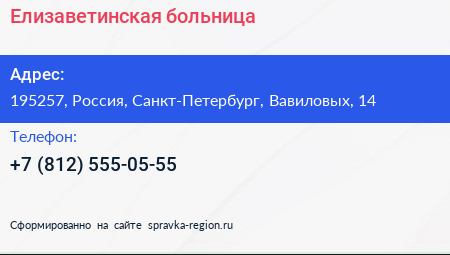 Елизаветинская больница по адресу 195257, Россия, Санкт-Петербург, Вавиловых, 14 в дальнейшем Организация, размещена в следующих категориях: