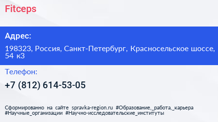 Fitceps по адресу 198323, Россия, Санкт-Петербург, Красносельское шоссе, 54 к3 в дальнейшем Организация, размещена в следующих категориях: