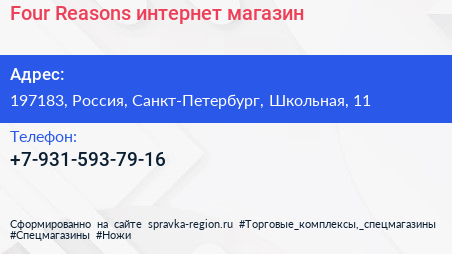 #Four Reasons, интернет-магазин по адресу 197183, Россия, Санкт-Петербург, Школьная, 11 в дальнейшем Организация, размещена в следующих категориях: