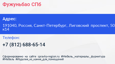 Фужуньбао СПб по адресу 191040, Россия, Санкт-Петербург, Лиговский проспект, 50 к14 в дальнейшем Организация, размещена в следующих категориях: