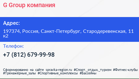 G Group, компания по адресу 197374, Россия, Санкт-Петербург, Стародеревенская, 11 к2 в дальнейшем Организация, размещена в следующих категориях: