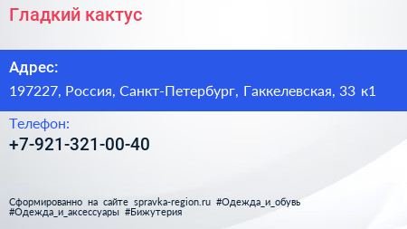 Гладкий кактус по адресу 197227, Россия, Санкт-Петербург, Гаккелевская, 33 к1 в дальнейшем Организация, размещена в следующих категориях: