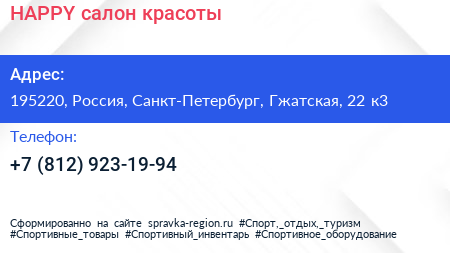 HAPPY, салон красоты по адресу 195220, Россия, Санкт-Петербург, Гжатская, 22 к3 в дальнейшем Организация, размещена в следующих категориях: