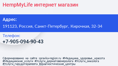 HempMyLife, интернет-магазин по адресу 191123, Россия, Санкт-Петербург, Кирочная, 32-34 в дальнейшем Организация, размещена в следующих категориях: