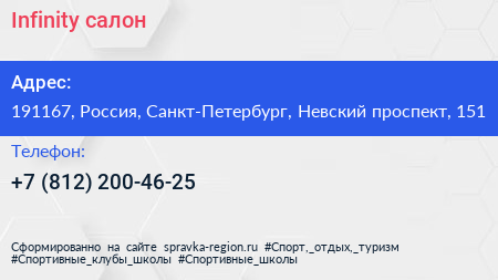 Infinity, салон по адресу 191167, Россия, Санкт-Петербург, Невский проспект, 151 в дальнейшем Организация, размещена в следующих категориях: