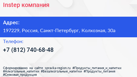 Instep, компания по адресу 197229, Россия, Санкт-Петербург, Колхозная, 30а в дальнейшем Организация, размещена в следующих категориях: