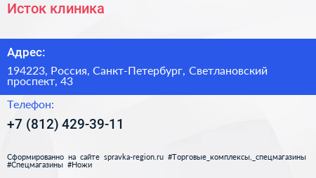 Исток, клиника по адресу 194223, Россия, Санкт-Петербург, Светлановский проспект, 43 в дальнейшем Организация, размещена в следующих категориях: