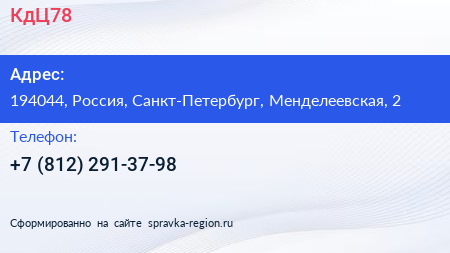 КдЦ78 по адресу 194044, Россия, Санкт-Петербург, Менделеевская, 2 в дальнейшем Организация, размещена в следующих категориях: