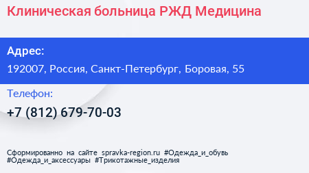Клиническая больница РЖД-Медицина по адресу 192007, Россия, Санкт-Петербург, Боровая, 55 в дальнейшем Организация, размещена в следующих категориях: