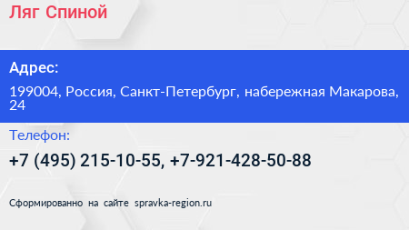 Ляг.Спиной по адресу 199004, Россия, Санкт-Петербург, набережная Макарова, 24 в дальнейшем Организация, размещена в следующих категориях: