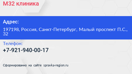 М32, клиника по адресу 197198, Россия, Санкт-Петербург, Малый проспект П.С., 32 в дальнейшем Организация, размещена в следующих категориях: