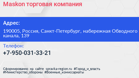 Maskon, торговая компания по адресу 190005, Россия, Санкт-Петербург, набережная Обводного канала, 139 в дальнейшем Организация, размещена в следующих категориях: