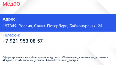 МедЭО по адресу 197349, Россия, Санкт-Петербург, Байконурская, 24 в дальнейшем Организация, размещена в следующих категориях: