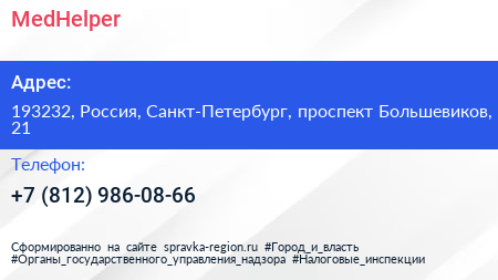 MedHelper по адресу 193232, Россия, Санкт-Петербург, проспект Большевиков, 21 в дальнейшем Организация, размещена в следующих категориях: