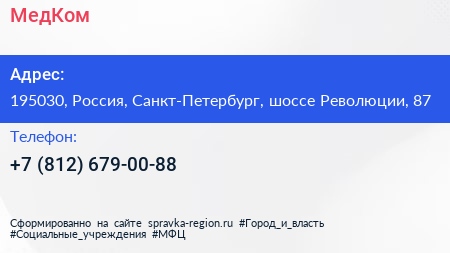 МедКом по адресу 195030, Россия, Санкт-Петербург, шоссе Революции, 87 в дальнейшем Организация, размещена в следующих категориях: