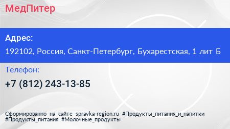 МедПитер по адресу 192102, Россия, Санкт-Петербург, Бухарестская, 1 лит Б в дальнейшем Организация, размещена в следующих категориях: