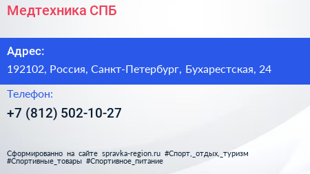 Медтехника СПБ по адресу 192102, Россия, Санкт-Петербург, Бухарестская, 24 в дальнейшем Организация, размещена в следующих категориях: