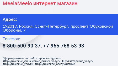 MeelaMeelo, интернет-магазин по адресу 192019, Россия, Санкт-Петербург, проспект Обуховской Обороны, 7 в дальнейшем Организация, размещена в следующих категориях: