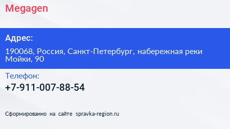 Megagen по адресу 190068, Россия, Санкт-Петербург, набережная реки Мойки, 90 в дальнейшем Организация, размещена в следующих категориях: