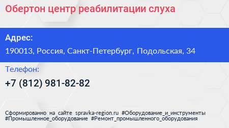 Обертон, центр реабилитации слуха по адресу 190013, Россия, Санкт-Петербург, Подольская, 34 в дальнейшем Организация, размещена в следующих категориях: