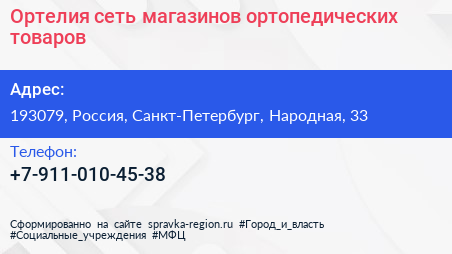 Ортелия, сеть магазинов ортопедических товаров по адресу 193079, Россия, Санкт-Петербург, Народная, 33 в дальнейшем Организация, размещена в следующих категориях: