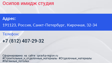 Осипов, имидж-студия по адресу 191123, Россия, Санкт-Петербург, Кирочная, 32-34 в дальнейшем Организация, размещена в следующих категориях: