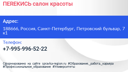 ПЕRЕКИСЬ, салон красоты по адресу 188666, Россия, Санкт-Петербург, Петровский бульвар, 7 к1 в дальнейшем Организация, размещена в следующих категориях:
