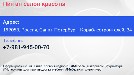 Пин ап, салон красоты по адресу 199058, Россия, Санкт-Петербург, Кораблестроителей, 34 в дальнейшем Организация, размещена в следующих категориях: