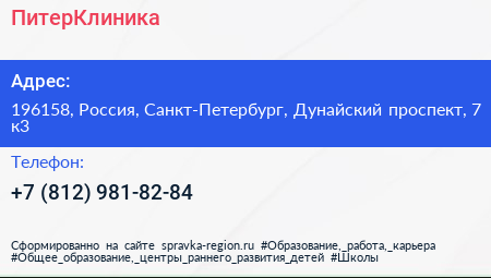 ПитерКлиника по адресу 196158, Россия, Санкт-Петербург, Дунайский проспект, 7 к3 в дальнейшем Организация, размещена в следующих категориях: