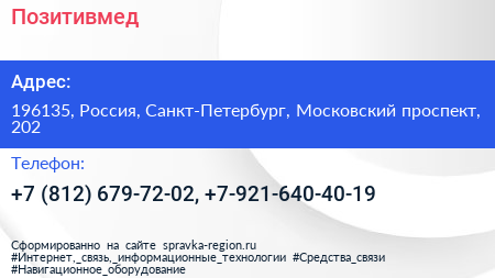 Позитивмед по адресу 196135, Россия, Санкт-Петербург, Московский проспект, 202 в дальнейшем Организация, размещена в следующих категориях:
