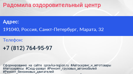 Радомила, оздоровительный центр по адресу 191040, Россия, Санкт-Петербург, Марата, 32 в дальнейшем Организация, размещена в следующих категориях: