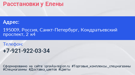 Расстановки у Елены по адресу 195009, Россия, Санкт-Петербург, Кондратьевский проспект, 2 к4 в дальнейшем Организация, размещена в следующих категориях: